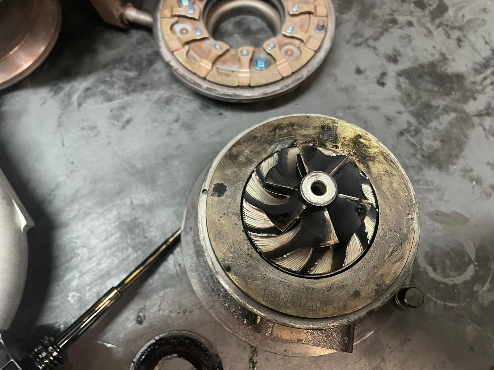 - Ulterior, axul turbosuflantei a fost verificat la exterior. Palele au fost investigate daca sunt drepte si strambe, iar aici s-a constat ca „inima turbosuflantei”, axul trebuie inlocuit.