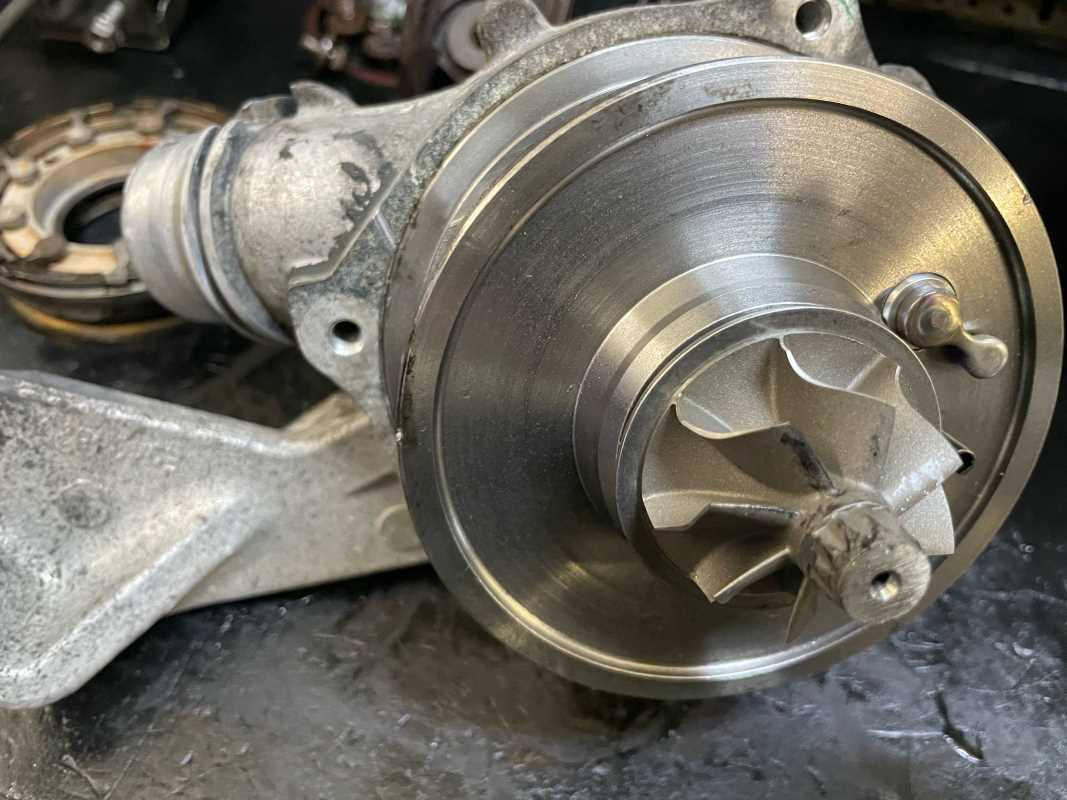 - Turbosuflanta a fost demontata de pe vehicul, iar in prima faza s-a constatat un „joc axial” de cel putin 5 sutimi. Astfel, conform procedurii, am continuat prin desfacerea turbinei pe componente.