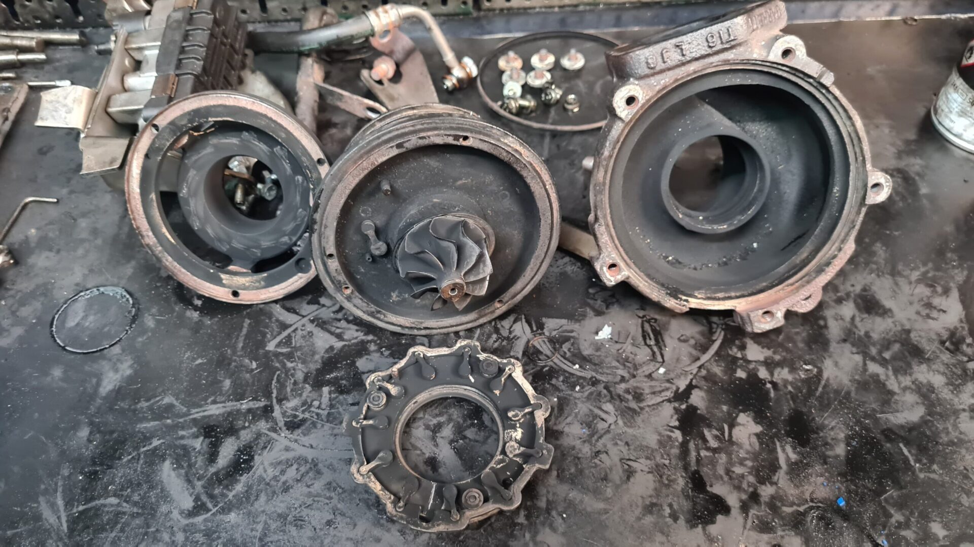 Ulterior, turbina a fost desfacuta. Depunerea de calamina este vizibila atat pe geometria variabila cat si pe componentele turbinei, datorita filtrului de particule infundat, dar si datorita uzurii corpului turbosuflantei.