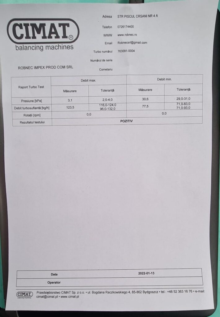 Certificatul de testare si echilibrare pt turbosuflanta BMW X3 E83