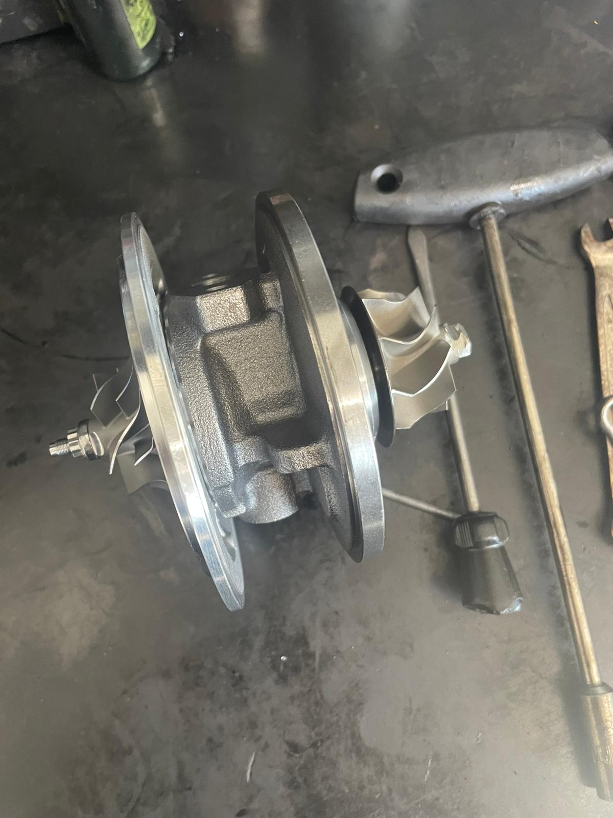 Pentru a finaliza reconditionarea turbinei, miezul a fost asamblat, dupa ce axul, compresorul, kit-ul dar si corpul au fost inlocuite cu piese originale. Kit-ul de reparatii este important pentru ca legatura dintre cele componente sa fie realizata. Acesta consta in segmenti, port-segmenti, bucsi si admisie. Dupa ce miezul a fost asamblat cu succes, acesta a fost testat pe bancul de echilibrare. Echilibrarea a aratat intr-adevar ca turbina functioneaza in parametrii optimi. Miezul poate fi vazut in poza de mai jos.